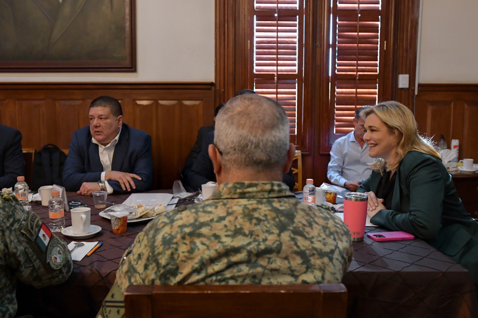 También estuvieron el delegado de la Fiscalía General de la República, Ramón Badillo; el coordinador de la Guardia Nacional, Alejandro Rivas; el representante de la Secretaría de Seguridad y Protección Ciudadana, Fernando Ávila; la delegada de programas del Bienestar, Mayra Chávez, y la representante del Instituto Nacional de Migración, Zaira Carrasco.