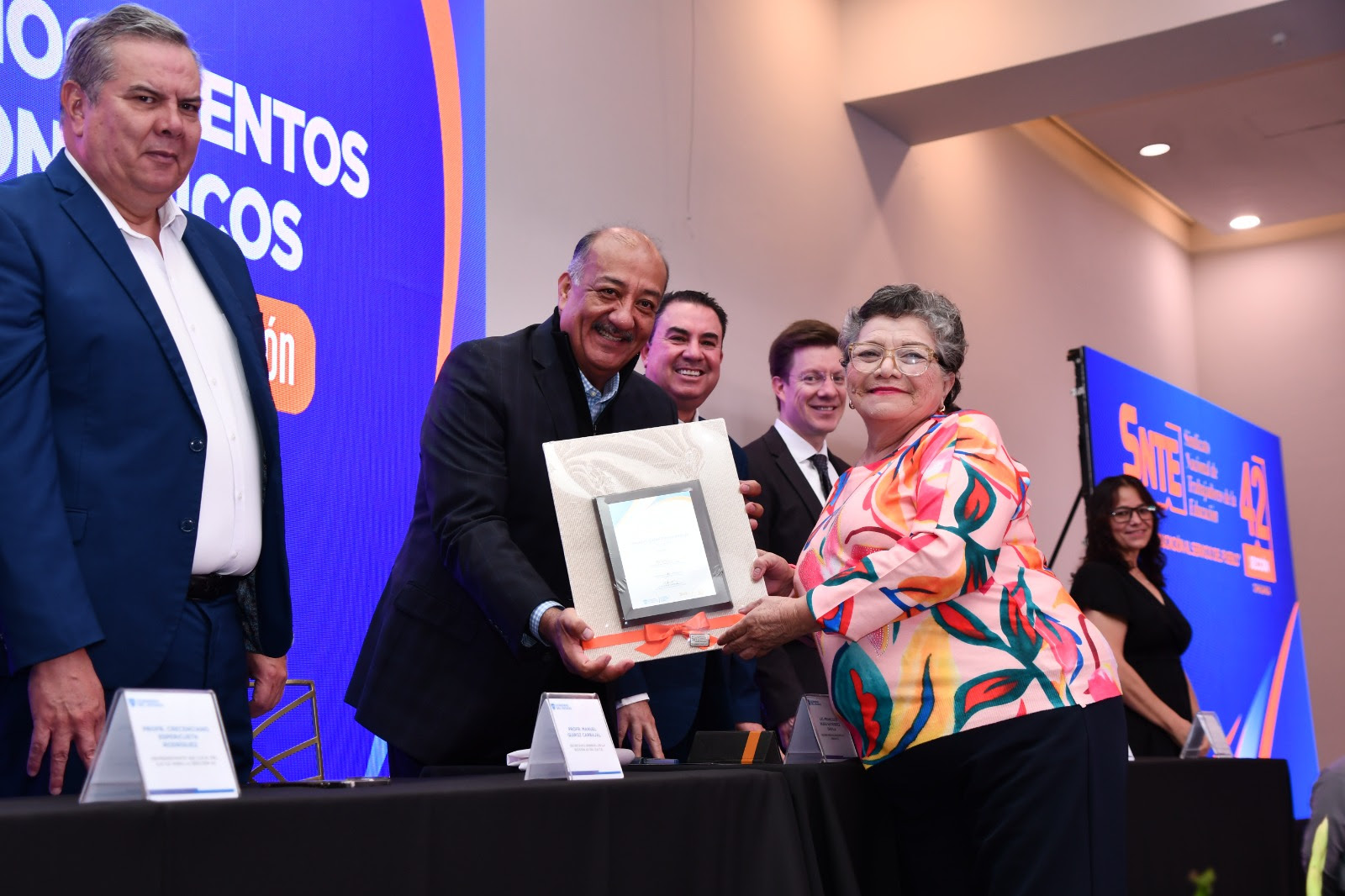 El secretario general de la Sección 42 del SNTE, Manuel Quiroz Carbajal, reconoció a las y los galardonados por la labor que desempeñan en beneficio de la educación en Chihuahua.