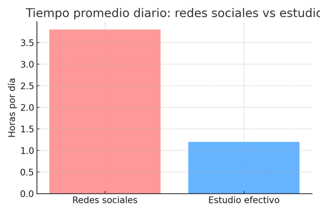 FImagen 2: Tiempo promedio en redes sociales vs. estudio diario.