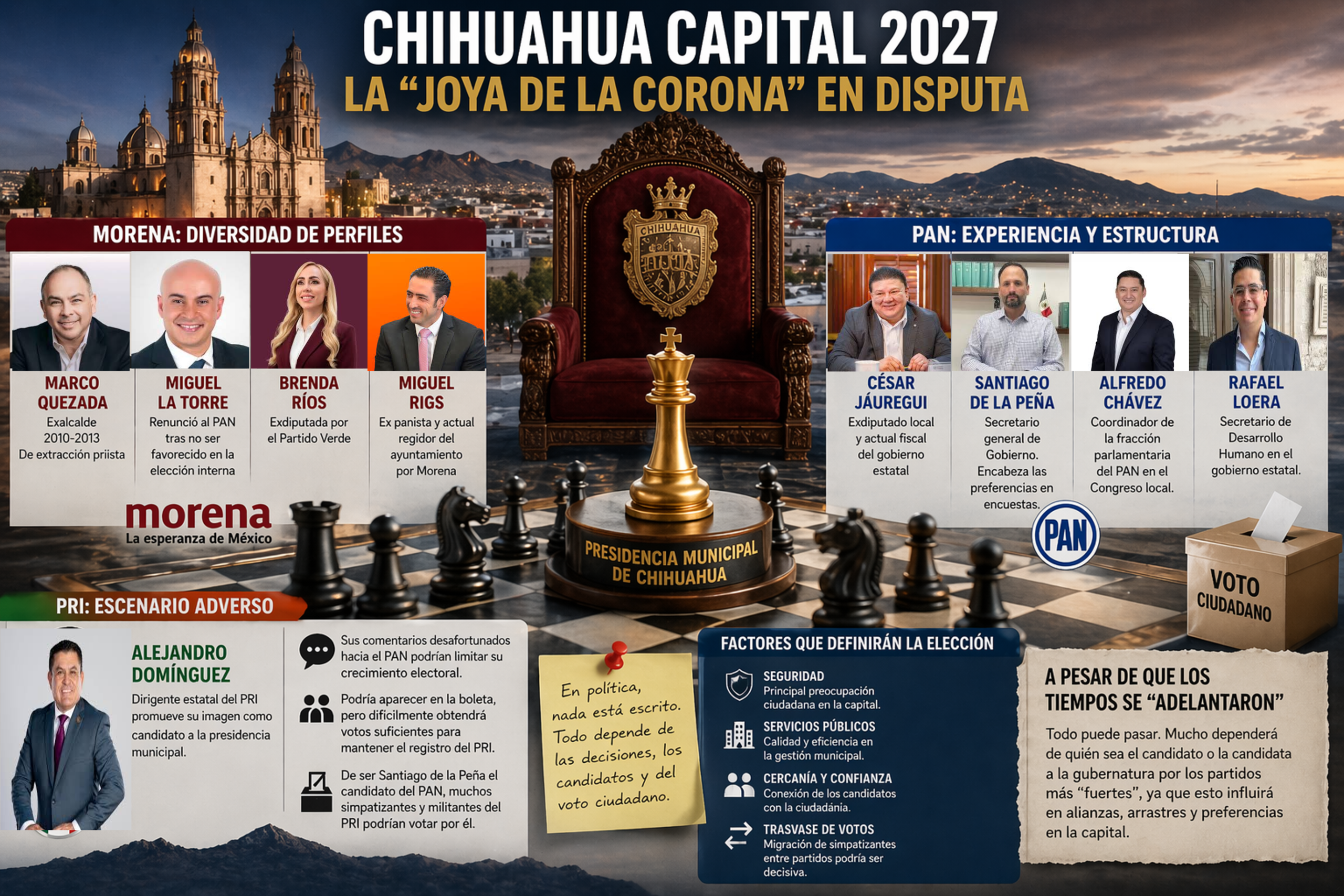 Chihuahua capital rumbo a 2027: Morena y PAN perfilan a sus cartas más fuertes en la “joya de la corona”
